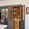 - A floor to ceiling kitchen larder with double doors which includes integrated spice racks and drawers