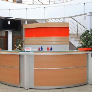When walking into a reception area the reception desk will be the main focus of the room. It is the centerpiece, the main anchor of the room that reflects the brand and the complexity of a business. Here are three main types of desks you can choose from to accommodate the reception room that will suit your needs.